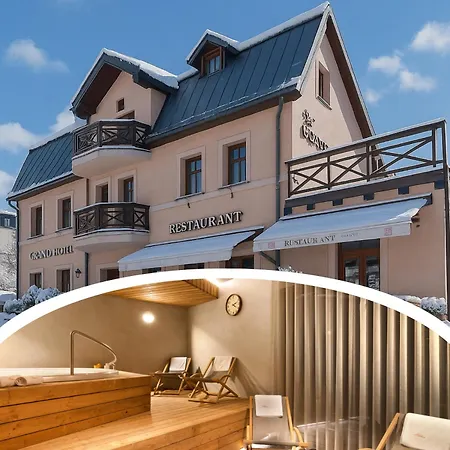 Wellness Hotel Grand offre un petit-déjeuner sous forme de buffet quotidiennement. On peut se reposer dans le bar lounge. Les clients peuvent dîner à Srub pod MedvEdinem à une courte distance de l'hotel.